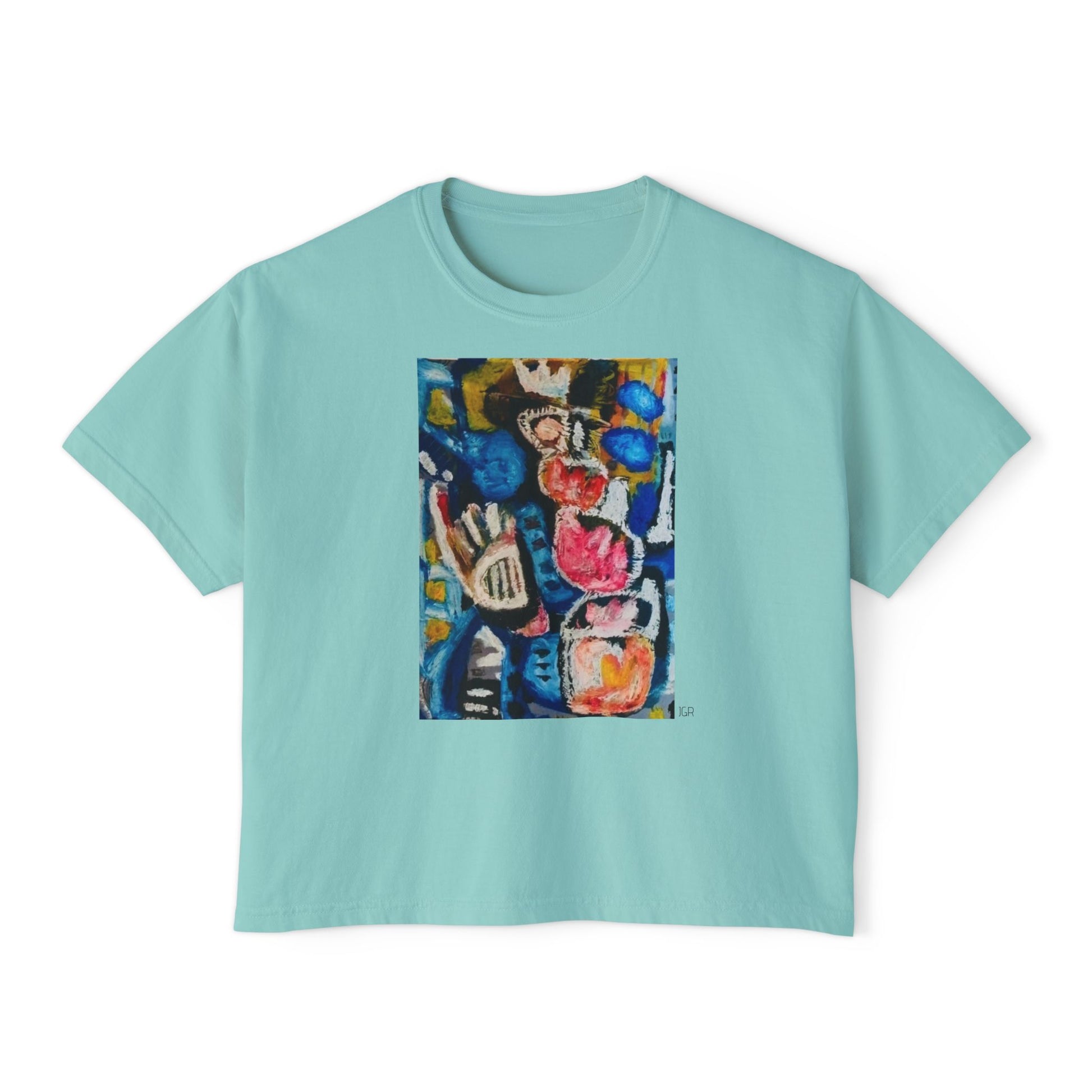 Original Art by Jocelyn G. Rent. Shorter length, boxy fit.