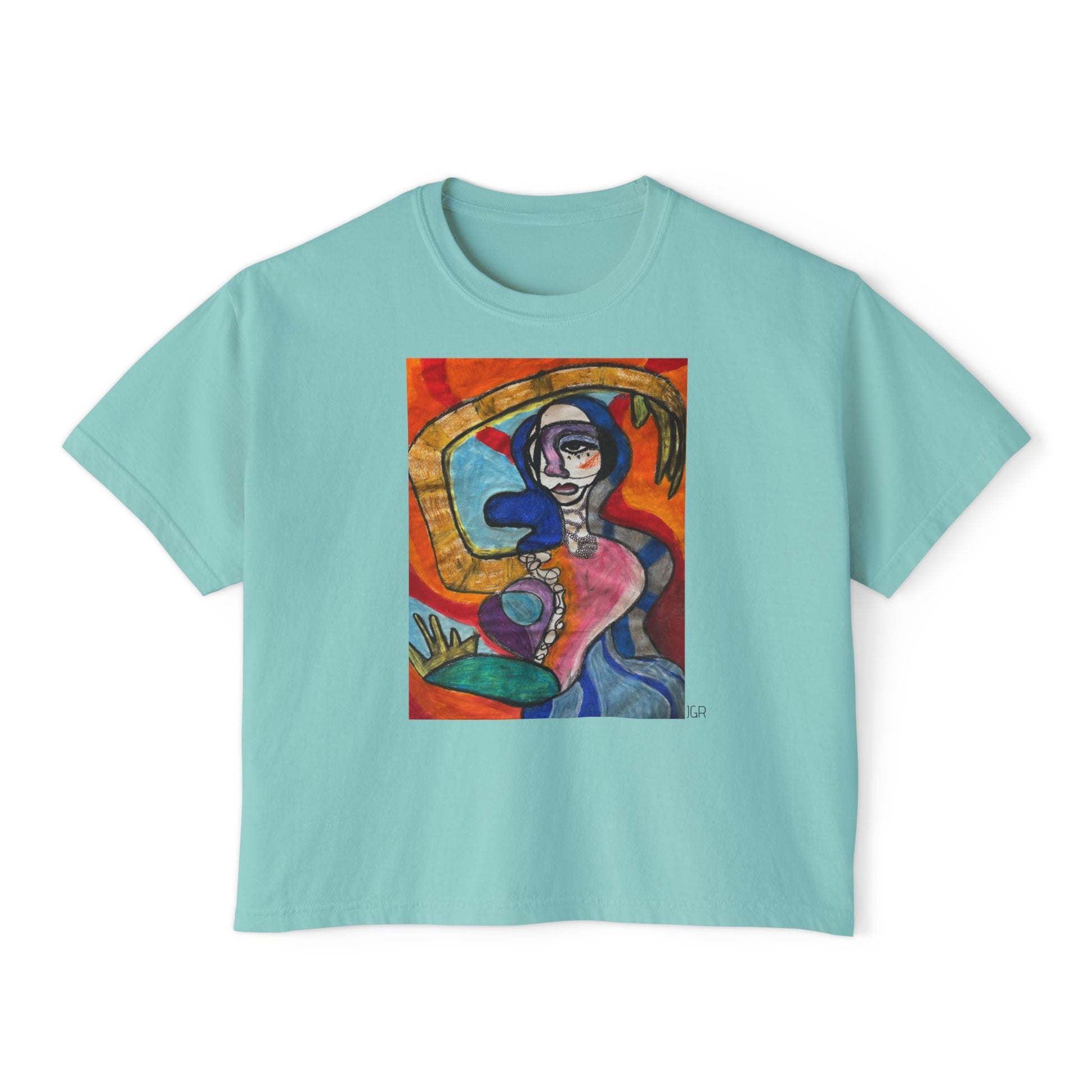 Original Art by Jocelyn G. Rent. Shorter length, boxy fit.